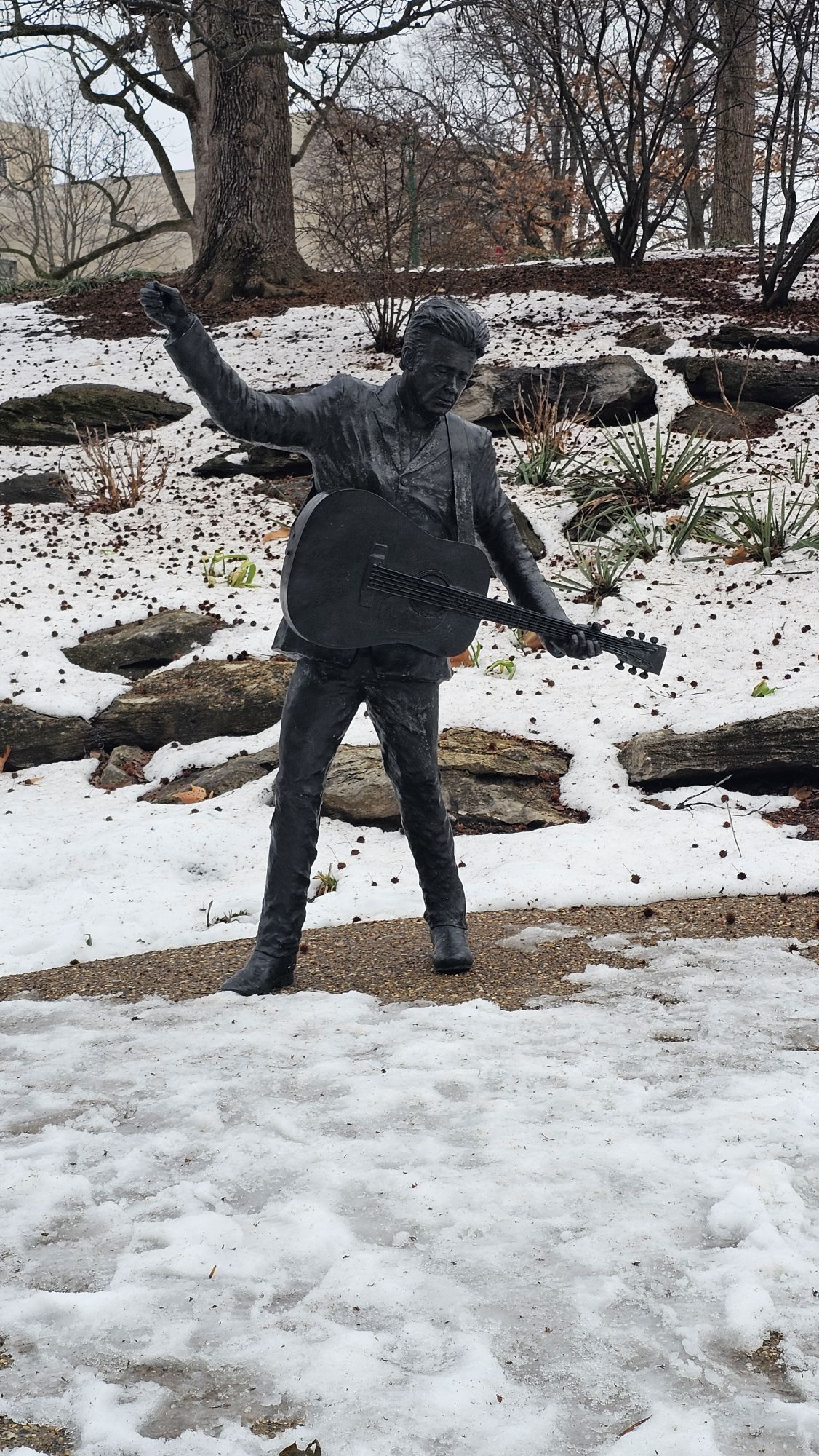 Once we found those 3 things, we scurried back to the Indy area where the home office is, and proceeded to swing by the Hoosier university campus to snap a picture of a recently erected statue of John Mellencamp! And the cold never “Hurt So Good”! He is a long-time resident of Bloomington and is recognized by the university for his contributions to charities like (and most importantly) Farm Aid. The singer does NOT possess an actual degree, nor was he a student at Indiana University, but he was granted an honorary graduate degree for his accomplishments.