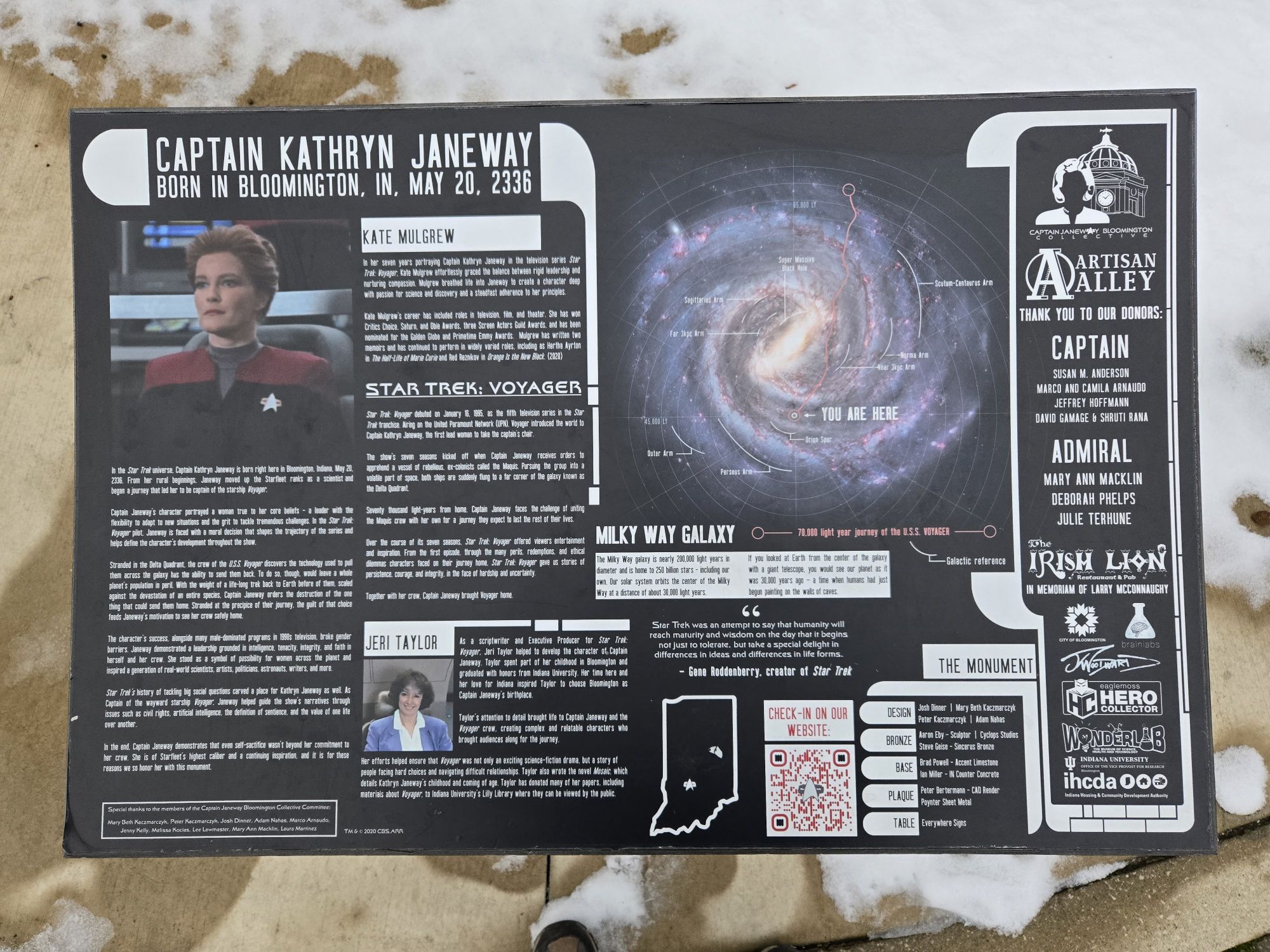 Once we finished there, we moved down the road just a few blocks and found the future birthplace of Captain Janeway from Star Trek Voyager. He’s the Trekkie, although he doesn’t watch this particular show, so if there is a picture of him with Captain Janeway, then that’s why I am not in the photos. I liked the original series and TNG…although I do NOT consider myself a Trekkie because I can name just the main characters. That’s the extent of my knowledge…and even THAT is a stretch.